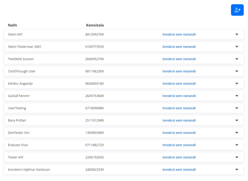 Umboðsaðilar geta verið með einn aðgang fyrir marga viðskiptavini (tengda aðila). Einfaldlega hoppaðu á milli notenda til að skoða reikninga, kostnaðarskráningu og skýrslur, auk þess að stofna reikninga, viðskiptavini, vörur eða skrá kostnað.